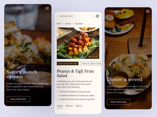 Flames stands as a premier fine dining restaurant brand, renowned for its exceptional offerings in a fiercely competitive luxury market. What sets Flames apart is its commitment to providing a bespoke culinary experience that is complemented by unmatched service and an exquisite ambiance. This unique value proposition appeals to a discerning clientele, including affluent patrons and corporate clients, who expect nothing less than a seamless, exclusive, and high-performance digital journey that mirrors the opulence found within the restaurant's elegant dining room.